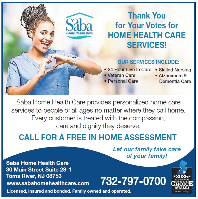 Saba Home Health Care is proud to announce that we were voted into the Top 3 Finalists in the Home Health Care Services category for Ocean County.